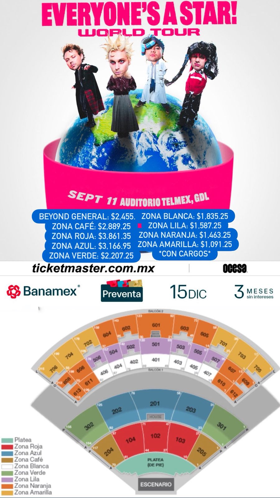 5 SECONDS OF SUMMER 🎸 5SOS EVERYONE’S A STAR! WORLD TOUR Viernes 11 de Septiembre del 2026 🗓️ 🏟️ Auditorio Telmex 🏟️ 📍 Guadalajara, Jalisco 📍