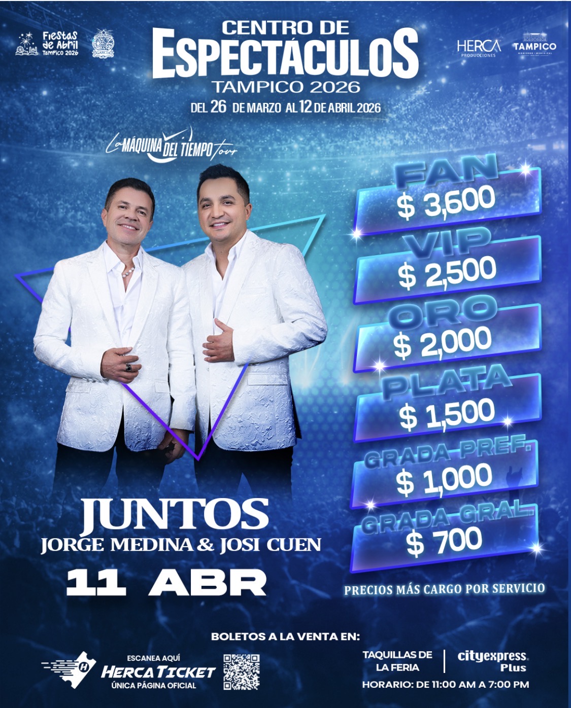 | ZONA | FAN 3600, VIP 2500, ORO 2000, PLATA 1500, GRADA PREF. 1000, GRADA GRAL. 700 |
