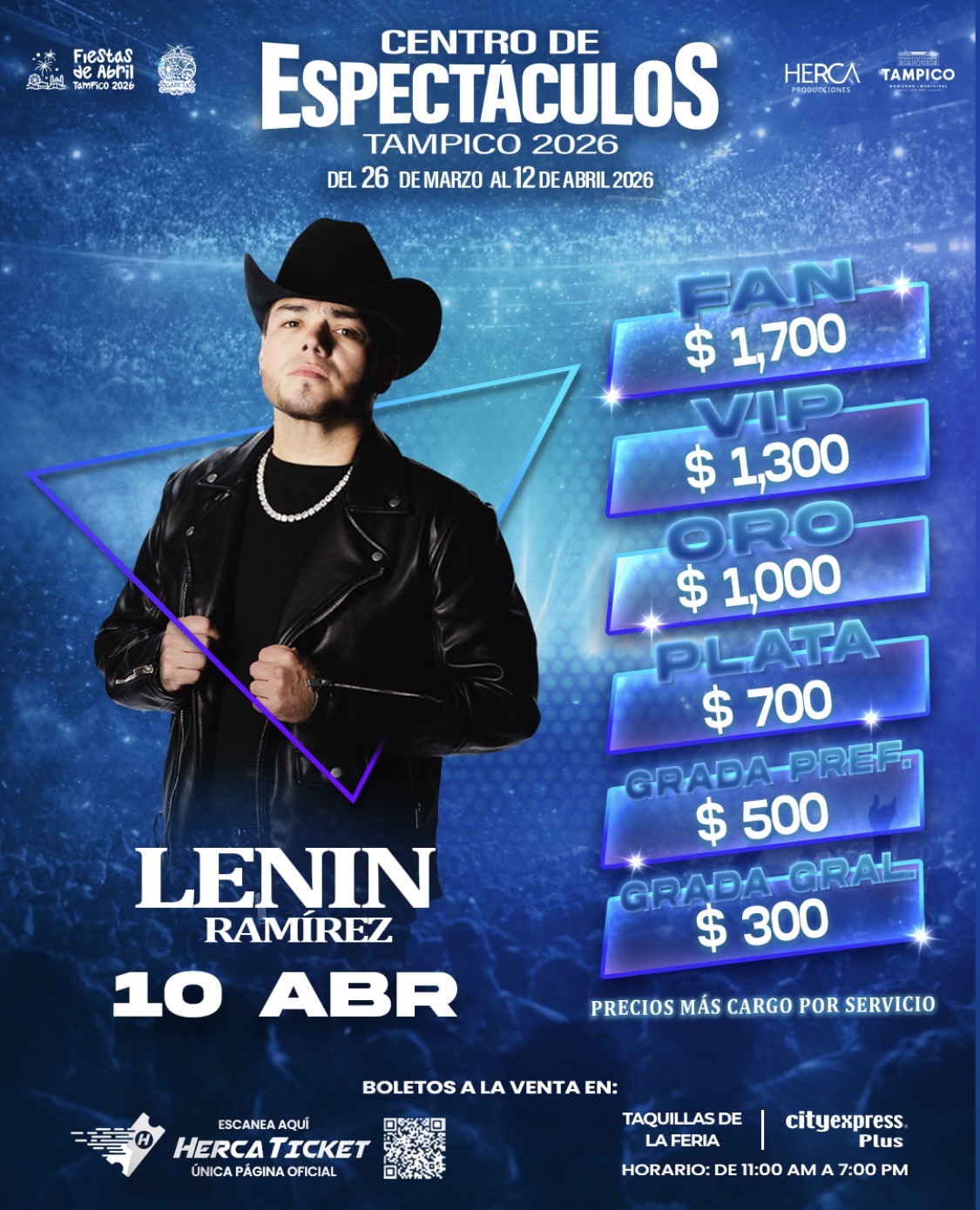 | ZONA | FAN 1700, VIP 1300, ORO 1000, PLATA 700, GRADA PREFERENTE 500, GRADA GENERAL 300 |