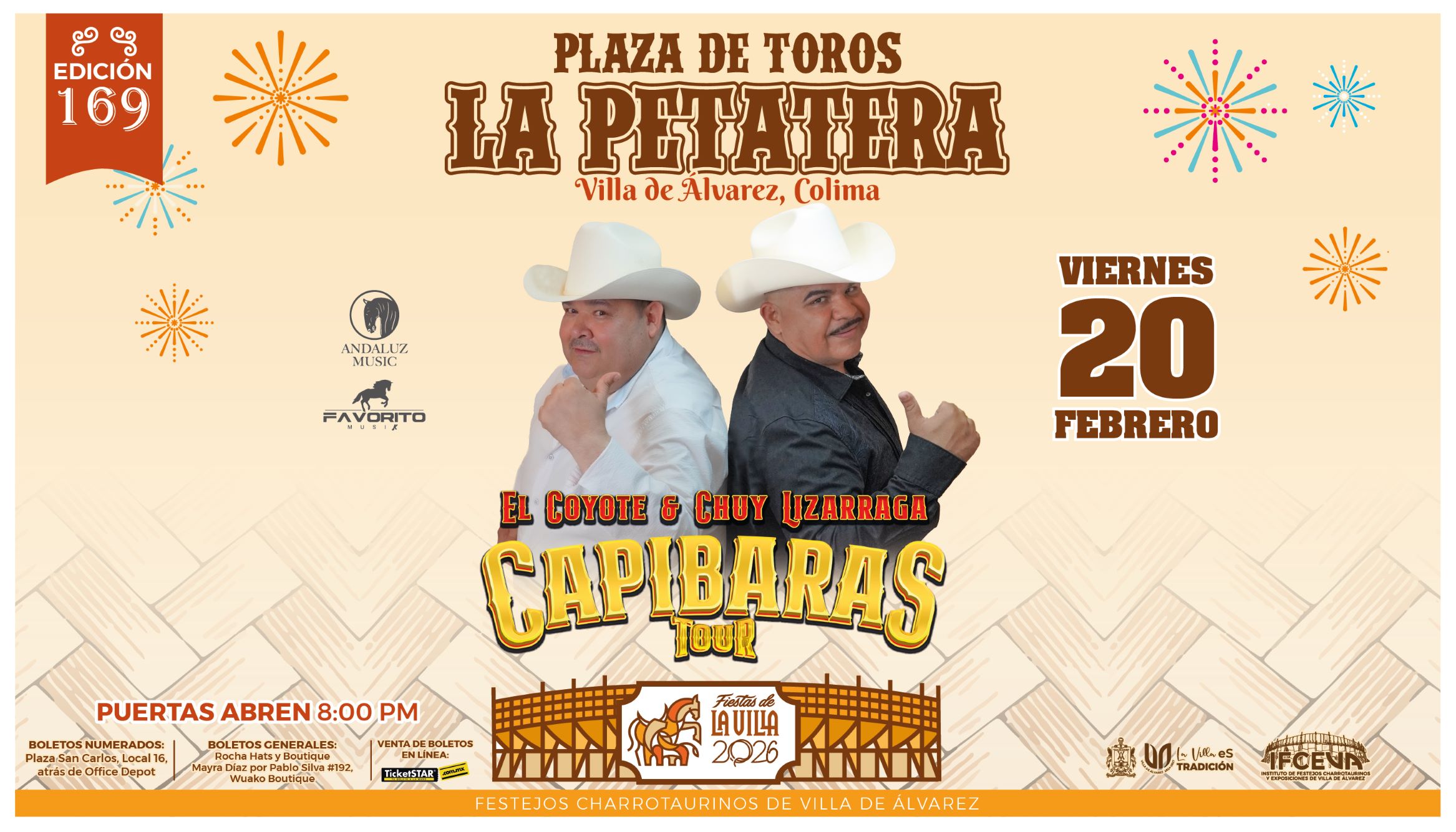| ZONA | VIP $ 3500, ORO $ 2500, GENERAL $ 700, PALCOS $ 2000 |