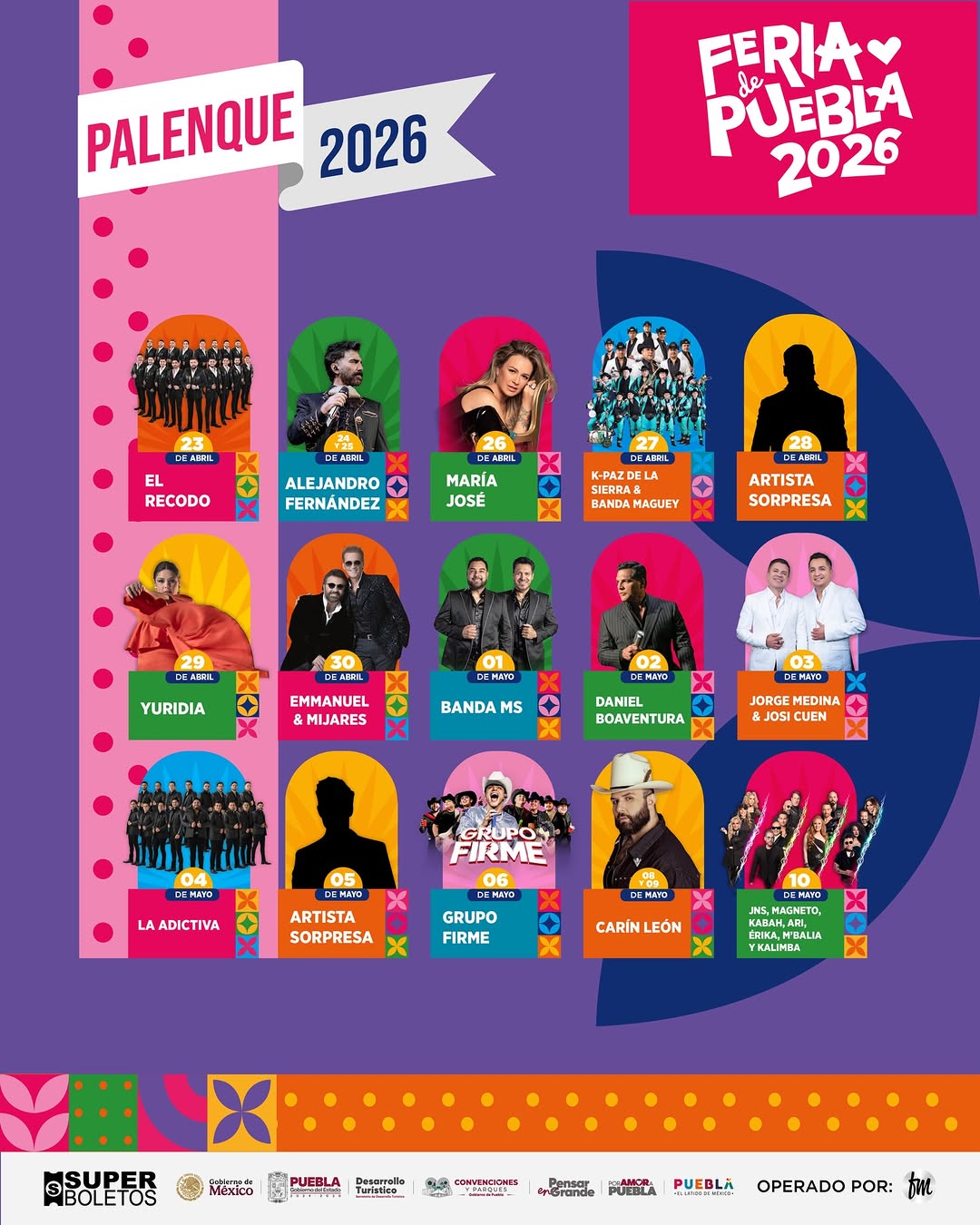 Disfruta uno de los conciertos más esperados del Palenque Feria de Puebla 2026, con artistas icónicos de la música regional mexicana en una noche llena de éxitos y ambiente de palenque.