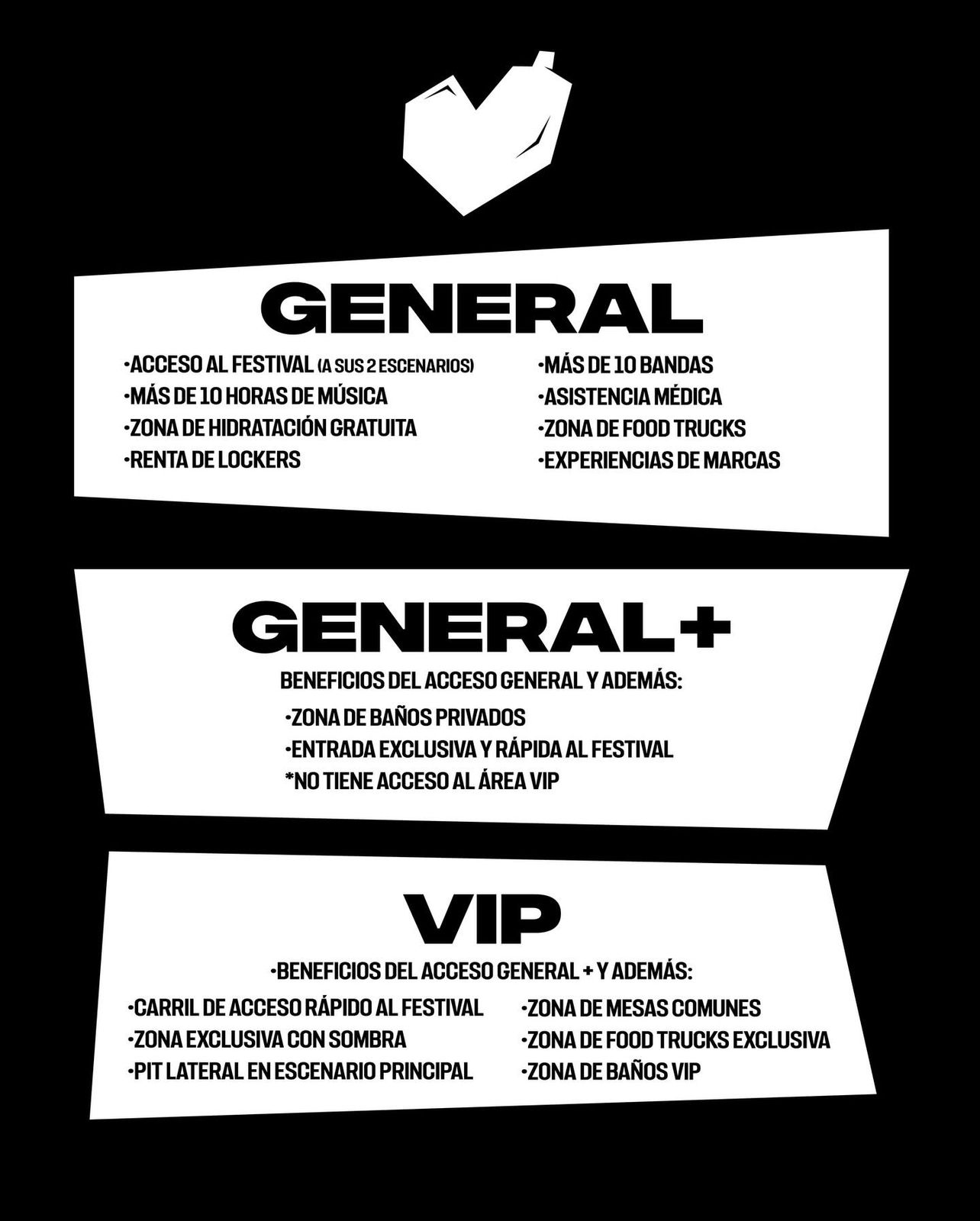 | Zona | General, General +, VIP |